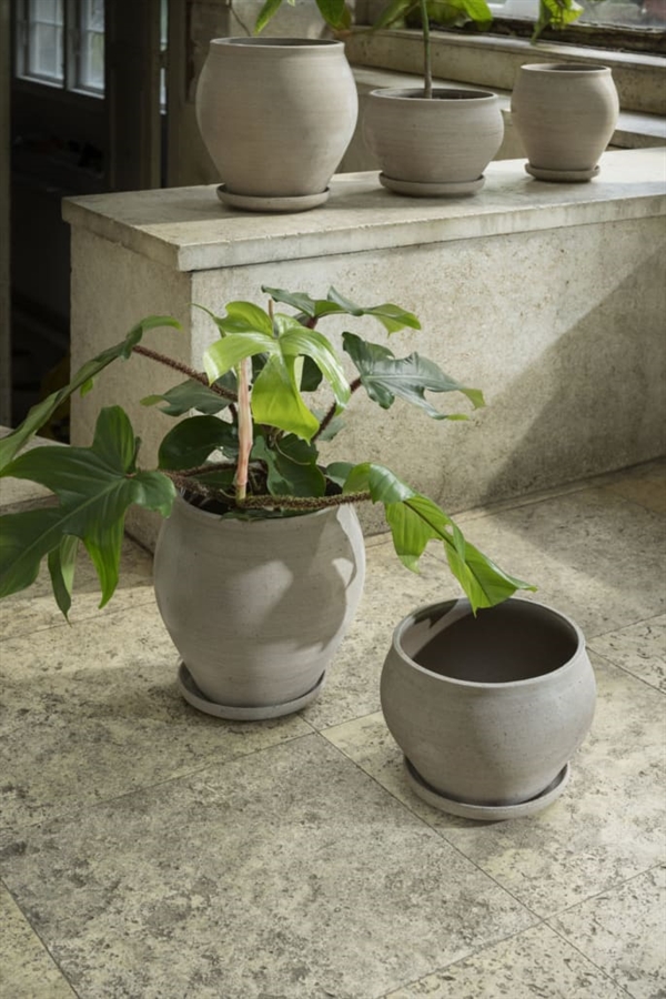 Delphi potten er en stilren terracottapotte med et funktionelt design inspireret af den klassiske amforaform. Den brede krop og smalle hals hjælper med at holde på fugten i jorden, så dine planter ikke tørrer ud for hurtigt. Til udendørs brug beskytter den smalle åbning rødderne mod overvanding fra regn. Potten leveres med en tilhørende underskål, som gør den nem at bruge både inde og ude. Designet er skabt af den italienske designer Pablo Dorigo og kombinerer praktisk funktion med enkel æstetik.
