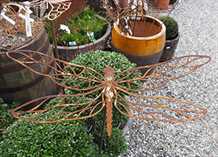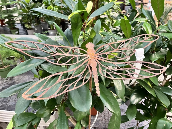 Havepynt i rustent jern som pynter godt op i din have eller på terrassen. Guldsmed figuren på pind sættes ned i jorden i dit bed eller i dine krukker.