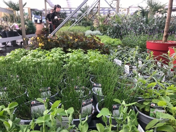 Skønne krydderurter i 10 cm potte, som er blevet dyrket med biologisk bekæmpelse.