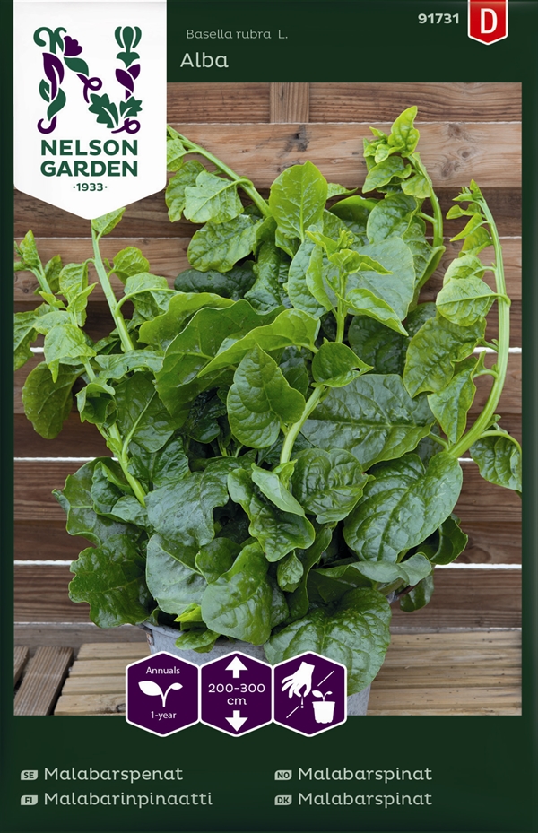 Klatrende dekorativ bladgrøntsag. Pluk bladene løbende, eller høst hele planten, når den er godt en meter høj. Behold ca. 20 cm af stammen og et par bladhjørner, så vokser den op igen. Fin i madlavning, både blade og stilke kan bruges som spinat. Også god i gratiner, og et par blade kan jævne din gryderet. Kan være længe om at gro. Frønyhed 2026.