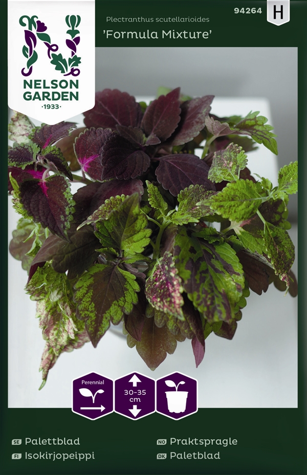 Denne blanding giver planter med ekstra store blade og mange farvevariationer. En solrig placering giver bladene en mere intens farve. Dekorativ potteplante. Beskær planten regelmæssigt, så den bliver busket. Frønyhed 2026.