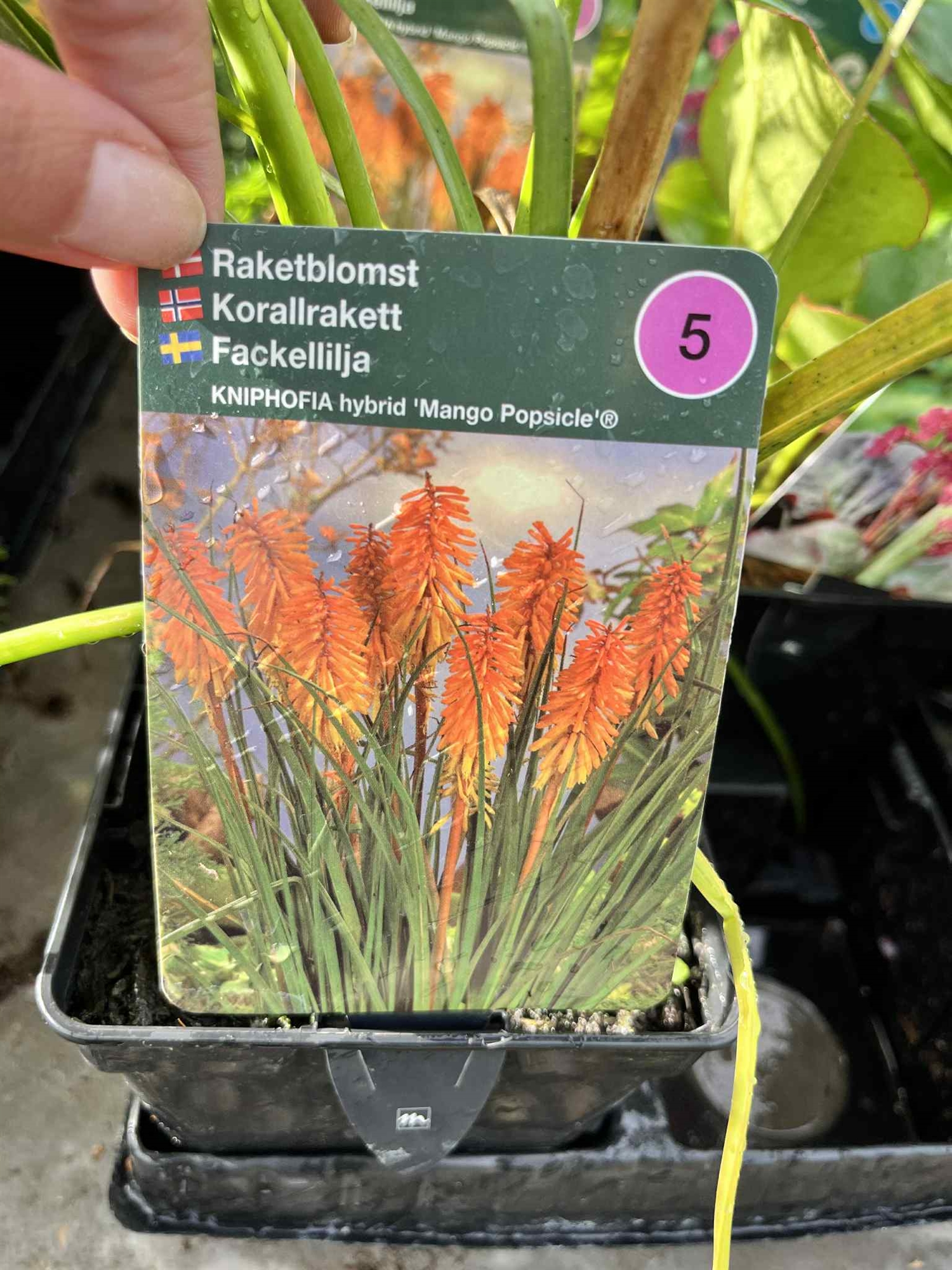 Kniphofia 'Mango Popsicle'® – også kaldet raketblomst – er en robust og letdyrkelig staude, der bringer stærke farver og struktur til enhver solrig have. De slanke, græsformede blade danner en tæt tue, hvorfra de karakteristiske orange blomster springer op og tiltrækker både bier og sommerfugle.