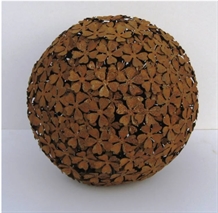 Denne unikke hortensiakugle i rusten jern er en smuk og stemningsfuld havedekoration. Kuglen er sammensat af små blomster i et kunstfærdigt mønster, der skaber et naturligt og rustikt udtryk. Perfekt til at tilføje karakter og patina til haven året rundt.