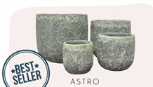 Astro er en serie håndlavede stentøjskrukker med en unik, glaseret lava-overflade i smukke grøn-grå nuancer. Krukkerne brændes ved 1200°C, hvilket gør dem ekstra holdbare og frostsikre ved korrekt brug. Astro fås i flere størrelser – fra små til meget store krukker, som virkelig skaber blikfang i haven eller på terrassen. Et oplagt valg, hvis du ønsker en stærk og farverig krukke med lang levetid.